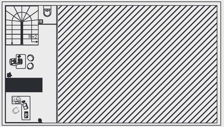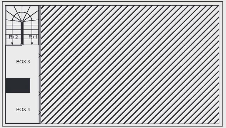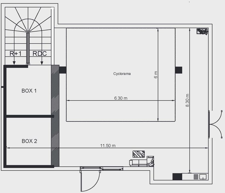 Voici une représentation en deux dimensions de l'espace intérieur complet du STUDIO 1, comprenant un rez-de-chaussée et deux étages.